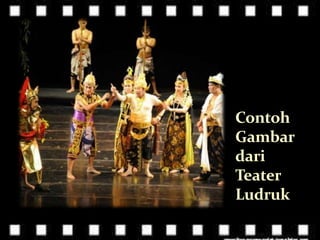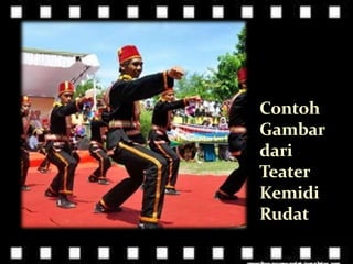 Teater tradisional Kemidi Rudat ini tersebar di seluruh wilayah pulau Lombok dengan berbagai corak ekspresi. Contoh Gambar dari Teater Ludruk 16. Teater Kemidi Rudat Bertahan di Tengah Gempuran Modernitas.