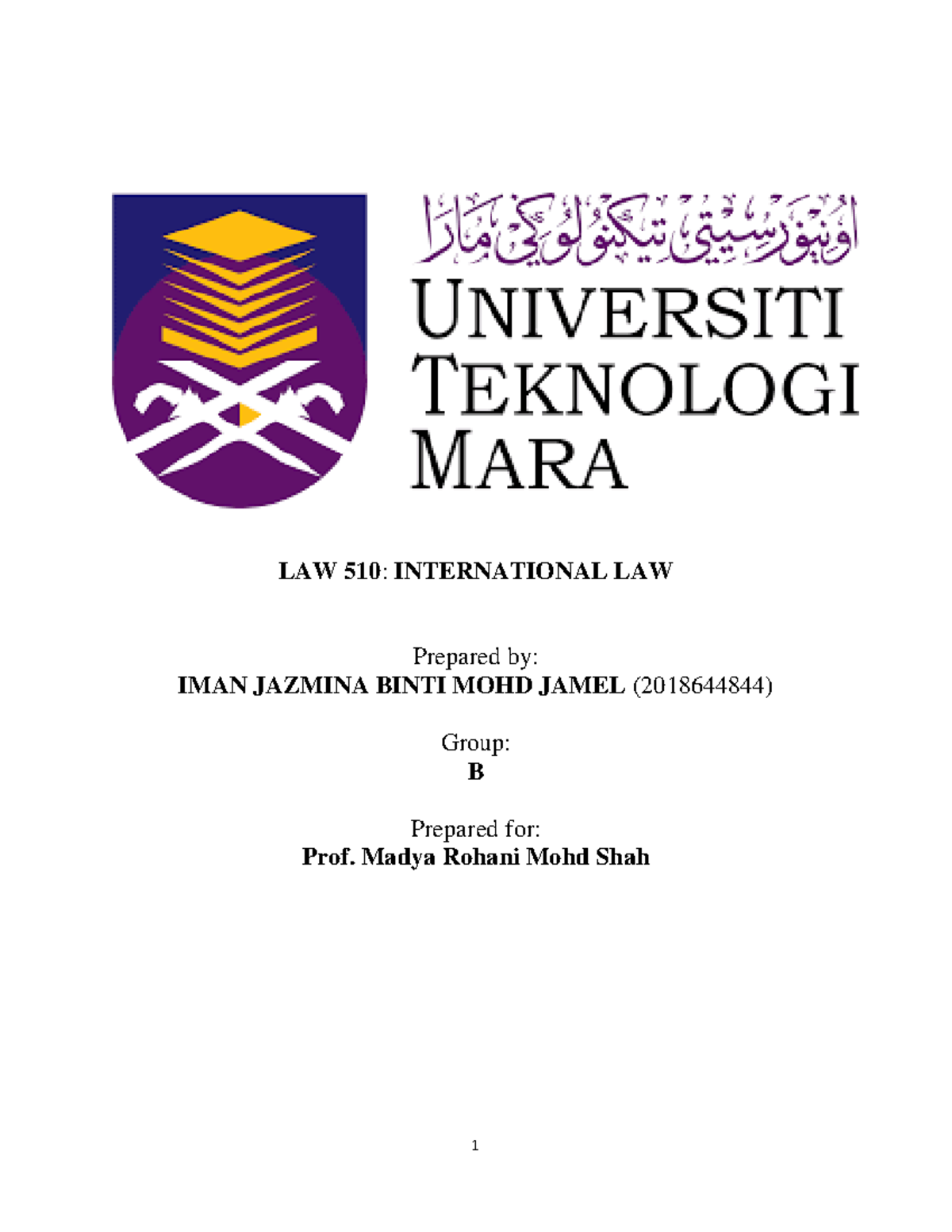 Test 1 Law 510 Asd Law 510 International Law Prepared By Iman Jazmina Binti Mohd Jamel Studocu